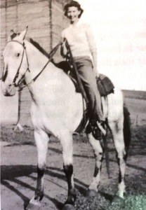 Guy hatte eine kräftige, dunkle Blue Roan M‘ amin Stute namens Blue, eine Enkelin von Knobby, die der Kolonne an Lasttieren vorausritt. Sie war geschickt und bewegte sich umsichtig. An einem Herbsttag wurde er in seinem Camp plötzlich von einem Blizzard überrascht, bevor er seine Ausrüstung zusammen hatte. Man konnte fast nichts sehen und die Schneedecke bewirkte, dass man die Wegmarkierungen fast nicht sehen konnte. Er musste noch Meilen zurücklegen und wenn er es nicht an jenem Tag schaffen würde, würde er vielleicht nie mehr rauskommen. Er tat nun das einzige, was ein erfahrener Reiter tun konnte. Er stieg auf seine Stute und ließ sie einfach machen. In dieser Nacht mussten seine Füße in den Steigbügeln einige Male Schnee wegtreten, aber Blue brachte ihn zurück – den ganzen langen Weg. Er behielt sie bis sie starb.