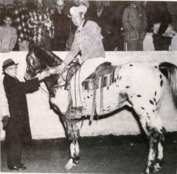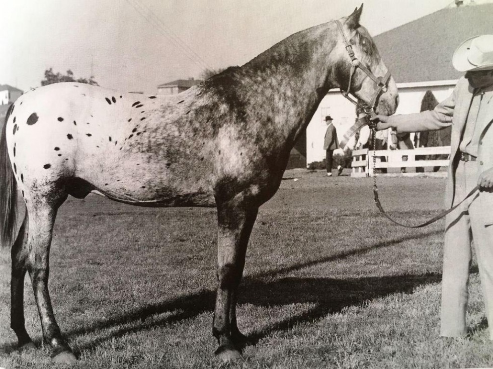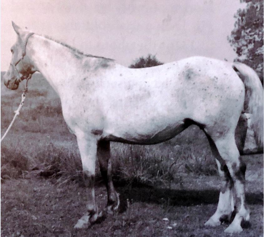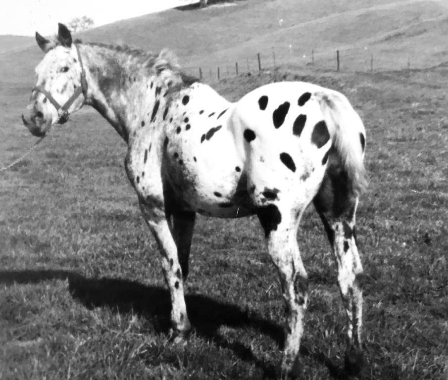 Knobby war ein zähes Performance Pferd und viele Pferdezüchter wollten ihre Stuten von ihm decken lassen. Maude Hinds kam und verewigte ihn in Öl – dieses Gemälde hing lange im Haus von Guys Witwe.