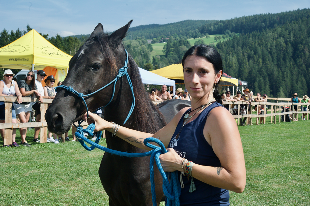 Die stolze Besitzerin Susanne Mühlhauser mit ihrem Wallach "M-Echos Chogan" auf der schönen Anlage in Lanzenkirchen. Herzliche Gratulation und viel Freude und Glück mir diesem wunderbaren menschenbezogenen Pferd.